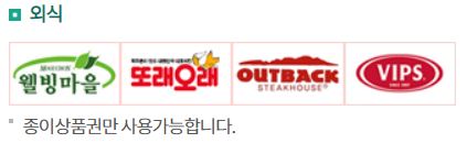 제휴사 사정에 따라 일부 매장 및 품목이 사용 제한될 수 있으며, 제휴사는 변동 될 수 있습니다.