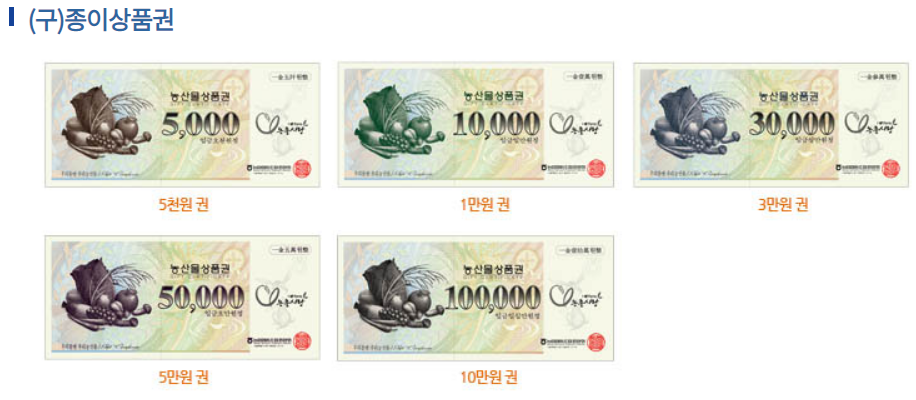 농산물상품권이라고 써 있고